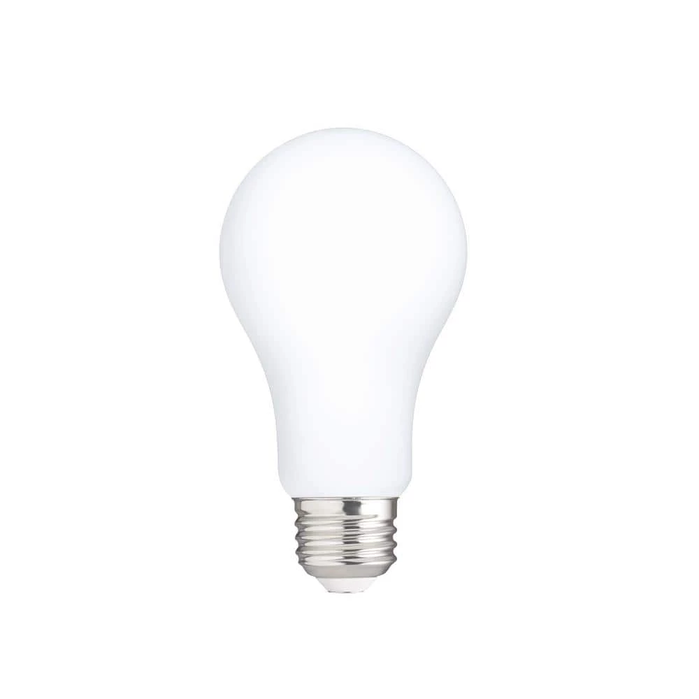 Upgrade your existing incandescent, halogen and CFL bulbs to energy efficient Ecosmart premium LED light bulbs today and start saving dollars and cents on your power bill. The more you replace, the more you’ll save. Designed to mimic the look of the traditional incandescent light bulbs, these A19 LED light bulbs feature an A-line shape and medium (E26) base. Ecosmart 100-watt equivalent A19 LED light bulb emit 1680 lumens of Daylight (5000K) light using only 14-watts of energy and are rated to last for 25,000 hours. Suitable for use indoors or outdoor, Daylight (5000K) color temperature is reccomended for any area of your home. Dimmable down to 3%, these energy efficient A19 LED bulbs provide superior dimming performance and are compatible with most LED rated dimmer switches. The standard medium (E26) bases on these LED light bulbs ensures compatibility with your fixture or lamp. Suitable for use in enclosed fixtures. 10 year warranty.