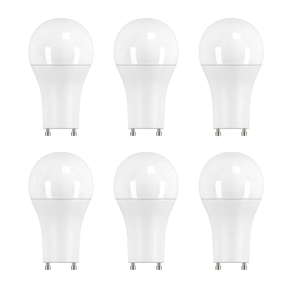 This 6-Pack of 100-Watt equivalent EcoSmart A19 GU24 base LED light bulb is an energy efficient replacement for traditional incandescent bulbs with all of the benefits of LED technology. The color temperature of this light bulb is Soft White (2700K). These LED light bulbs are dimmable and provide an omni-directional 360 degree distribution of light. The EcoSmart 100-Watt A19 LED light bulb uses only 15-Watt of energy that is an 85% savings over traditional lighting and that means savings on your energy bill every month. The 25000-hour lifespan and 5-year warranty makes these lights a great choice for applications in your home and office. Start saving today.