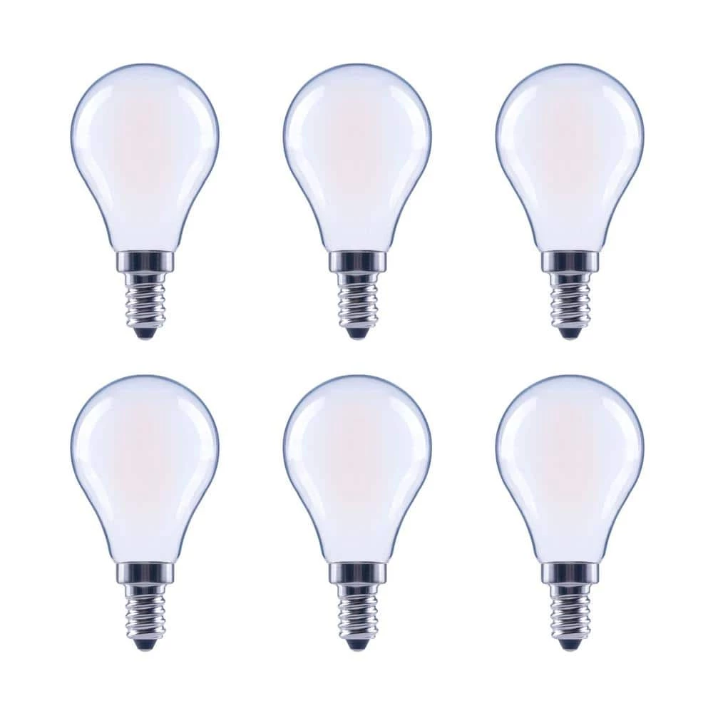 This 6-Pack of 40-Watt equivalent EcoSmart A15 Candelabra base filament LED light bulb is a stylish replacement for traditional incandescent bulbs with all of the benefits of LED technology. The color temperature of this light bulb is Soft White (2700K). These LED light bulbs are dimmable, have a Frosted all-glass exterior and provide an omni-directional 360 degree distribution of light. The EcoSmart LED 40-Watt equivalent decorative LED vintage style filament light bulb uses only 4-Watt of energy that is a 90% savings over traditional lighting and that means savings on your energy bill every month. The 15,000-hour lifespan and the 5-year warranty makes these light bulbs a great choice for applications in your home and office. Start saving today with EcoSmart.