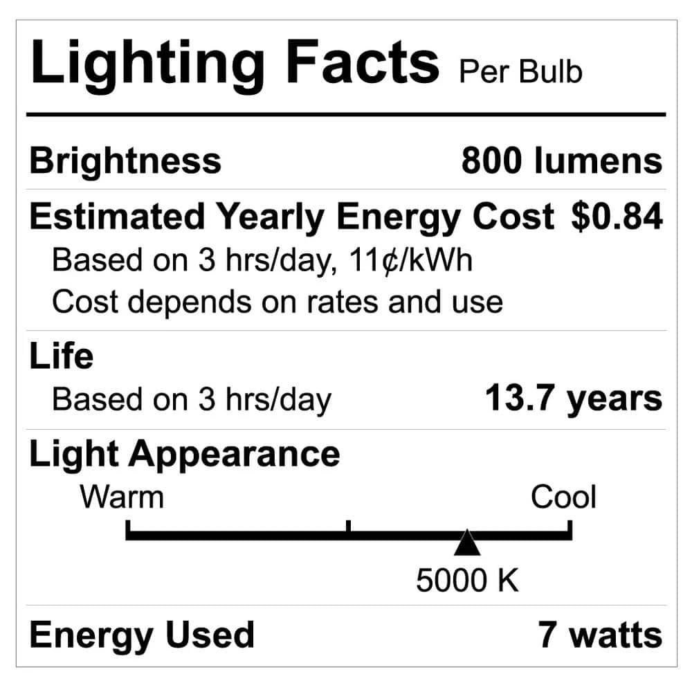 - Energy used: 7-Watt (equivalent to a 60-Watt standard incandescent light bulb)