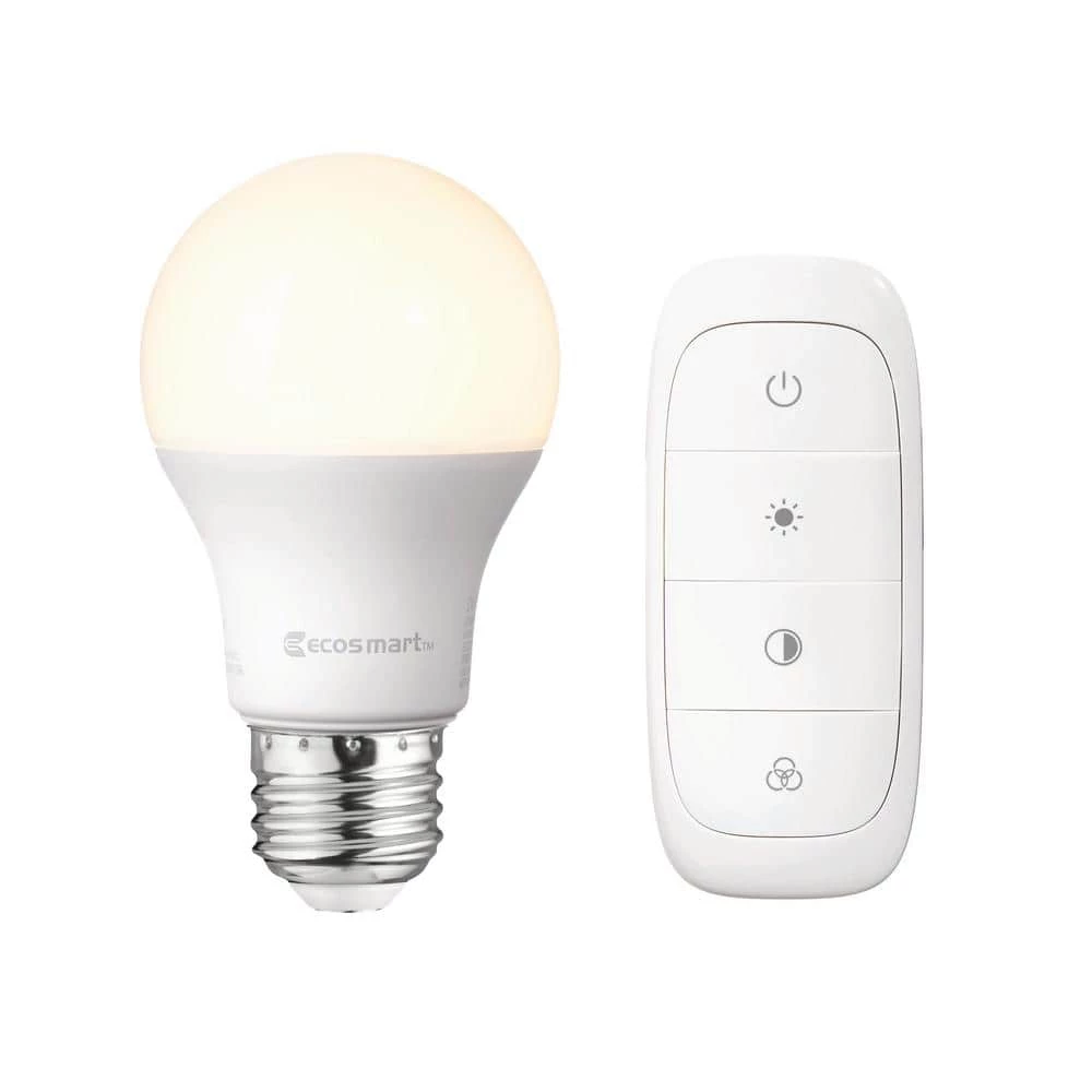 This energy efficient color changing A19 LED light bulb kit includes a Bluetooth remote that is used to control all the features of the bulb. The A19 LED bulb has several shades of white and a range of colors to choose from. Simply hold down the button on the included remote to change from Soft White (2700K) to Daylight (5000K). Another button on the remote, can be held down to cycle through 6 colors in a variety of shades. The LED A19 bulb is also dimmable via the included remote. Pair up to 15 bulbs to one remote. Light. Your Way.