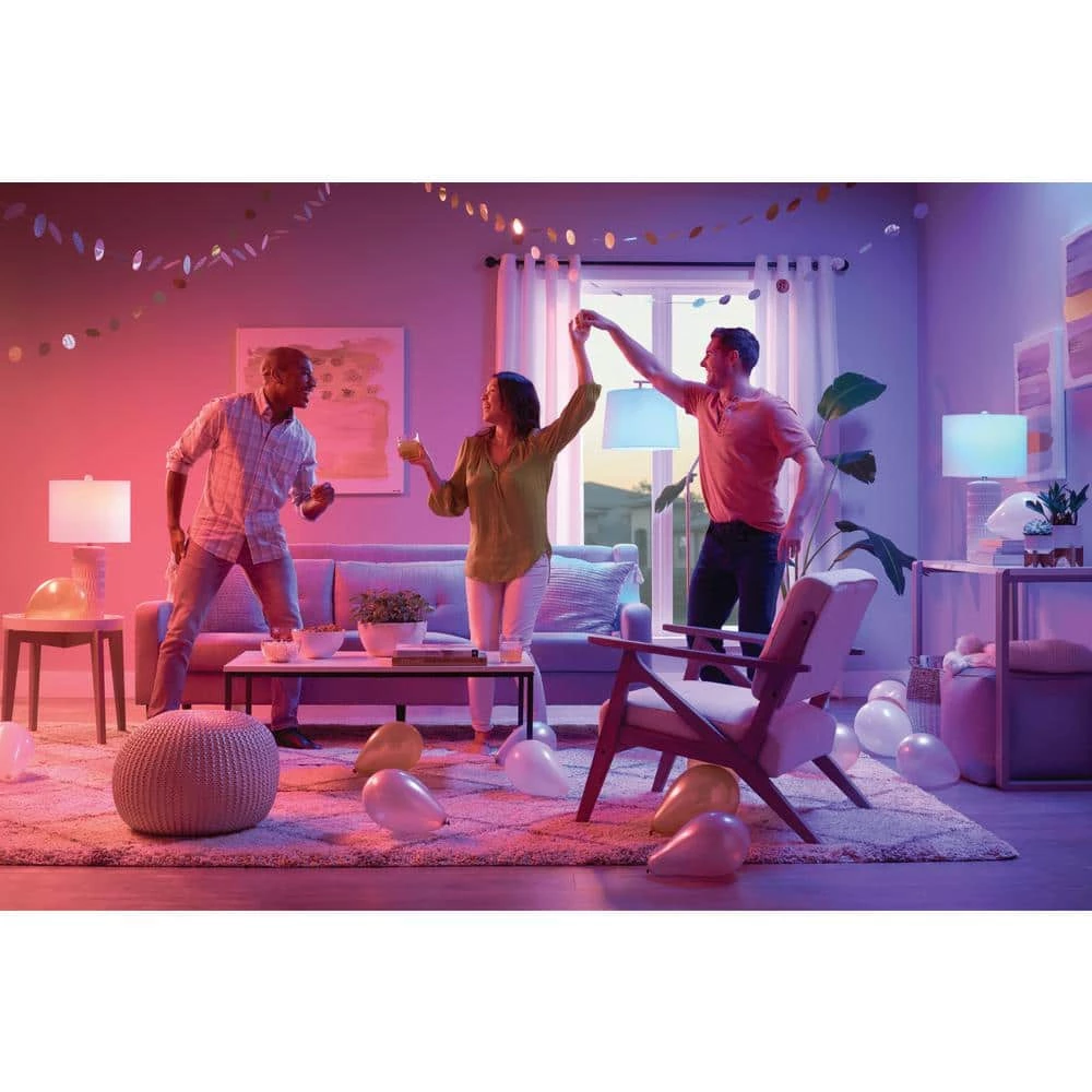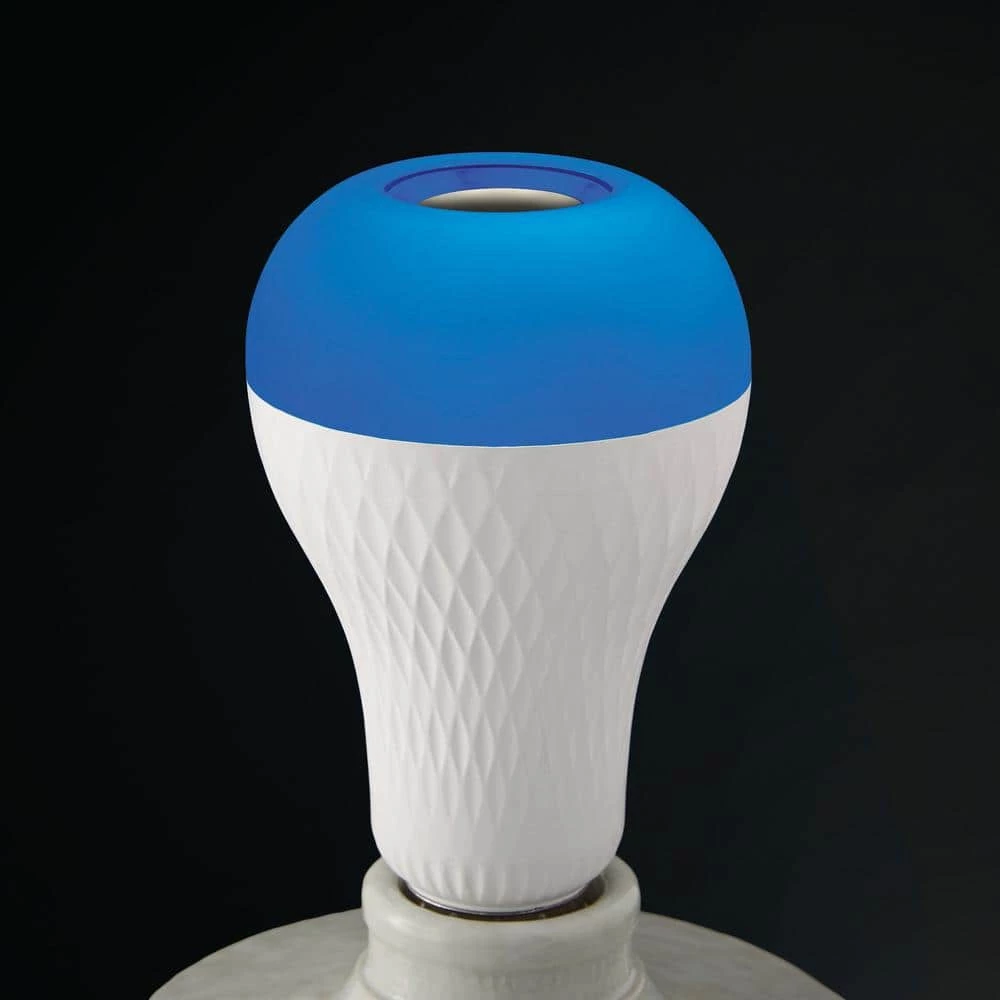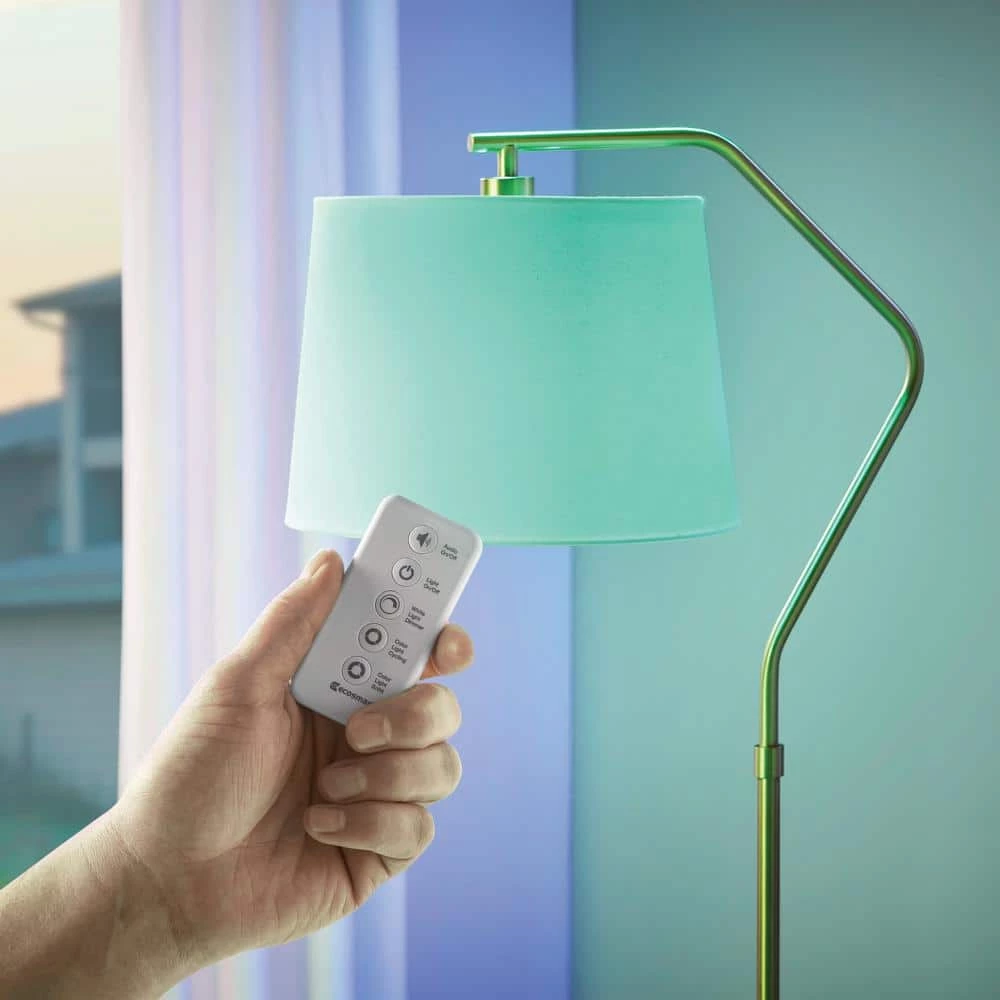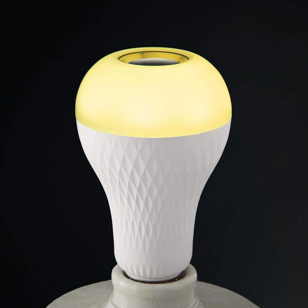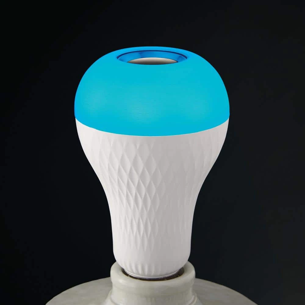 Ecosmart A21 LED Bluetooth speaker bulbs combine lighting with Bluetooth technology. Its integrated Bluetooth speaker plays your favorite tunes by simply connecting to your favorite Bluetooth device without the need for extra wiring or a hub. Use as a standard E26 LED bulb to light up your space and enjoy the soft glow of 3000K white light. For a unique effect, choose individual red, green, or blue color or fade RGB. Add a fun and unique atmosphere to any celebration by matching your lighting to the beat of your music. Simply choose your favorite song and your bulb will flash to the beat of any song. This bulb is equipped with a remote for added convenience that allows you to switch between dimming white light, solid and fade through color effects. There is no need to uninstall the bulb to turn on or off, it’s remote allows you to easily turn Bluetooth audio and light on and off with the press of a button. This unique bulb emits 700 Lumens of white light and uses 9 Watts and is versatile making it ideal for use in a variety of fixtures and lighting applications.