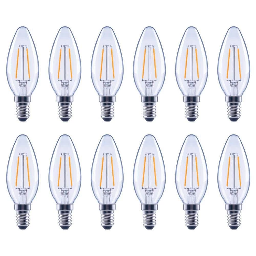 The 60-Watt Equivalent EcoSmart B11 candelabra base filament LED light bulb is a stylish replacement for traditional incandescent bulbs – with all the benefits of LED technology. The color temperature of this light bulb is Soft White (2700K). These LED light bulbs are dimmable, have a clear all-glass exterior and provides an omni-directional 360° distribution of light. The EcoSmart LED 60-Watt equivalent decorative LED filament light bulb uses only 5-Watt of energy – that is a 90% savings over traditional lighting – and that means savings on your energy bill every month. The 15,000-hour lifespan and 5-year warranty makes these light bulbs a great choice for applications in your home and office. Start saving today with EcoSmart.