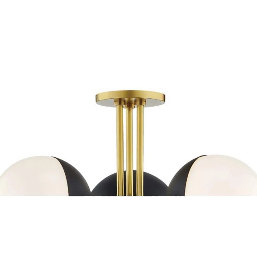 Everyone deserves to enjoy the benefits of good design in their home-and now everyone can.Boasting bold globes of milk glass less than half-covered by dark shades and contrasting finishes, Renee exhibits a mixture of drama, elegance, and fun. Gooseneck arms give it a classic feel, woven cords a contemporary one.